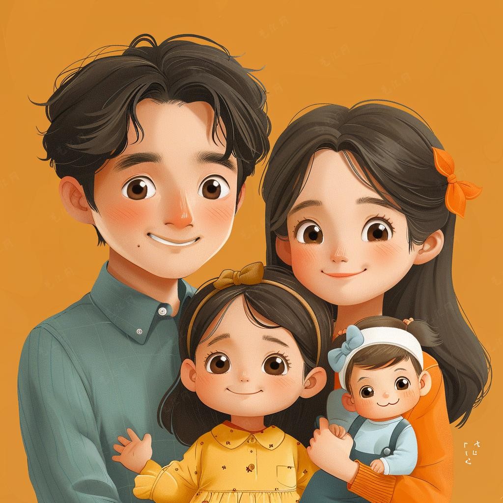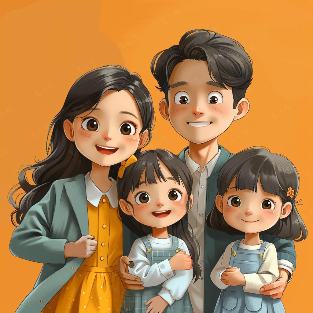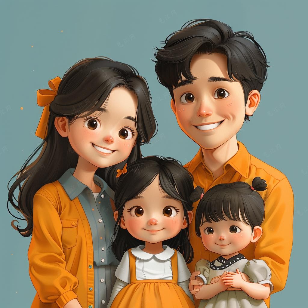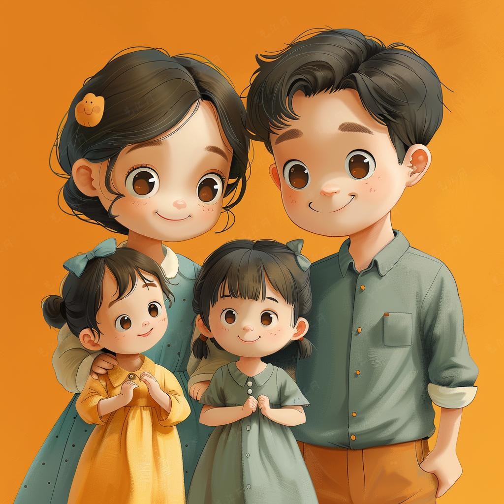 一家四口,两个可爱的小姐妹,手牵手、心连心,共同书写着家的美好篇章。暖色系的色调,如同阳光般温暖人心,每一张头像都充满了爱与欢乐。