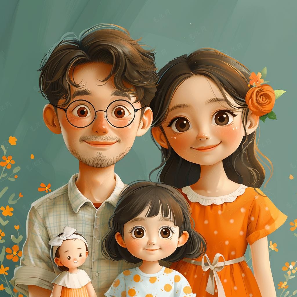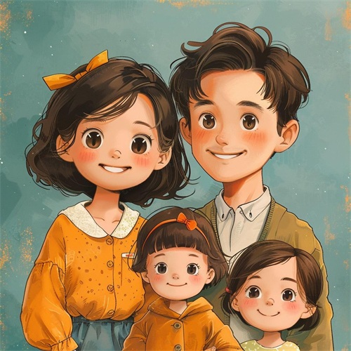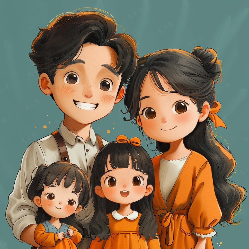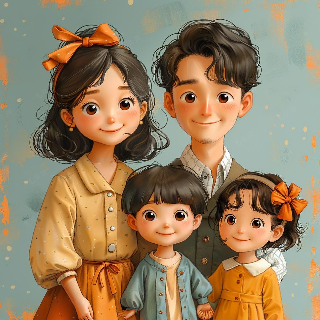 一家四口,两个可爱的小姐妹,手牵手、心连心,共同书写着家的美好篇章。暖色系的色调,如同阳光般温暖人心,每一张头像都充满了爱与欢乐。