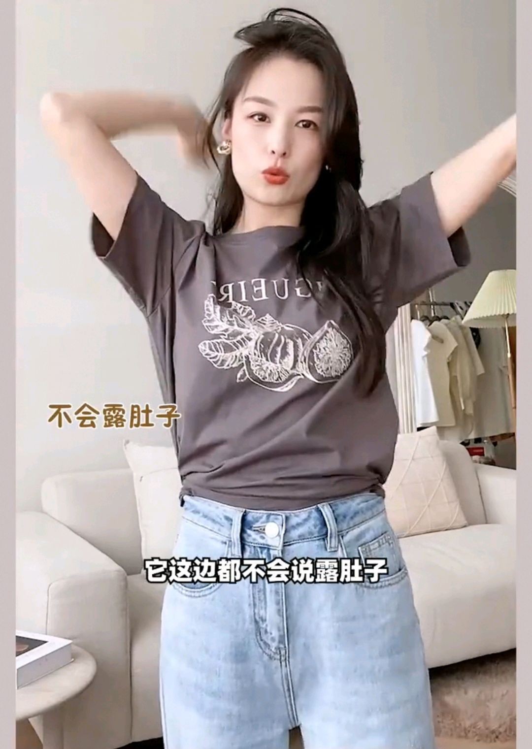 然后呢,我们再给它塞回到裤子,这样是不是马上就改变T恤的一个长度?