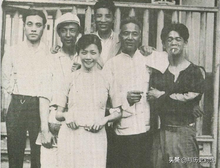 1933年,《小玩意》工作人员合影(左起第2为导演孙瑜、第3是阮玲玉、最右为韩兰根)