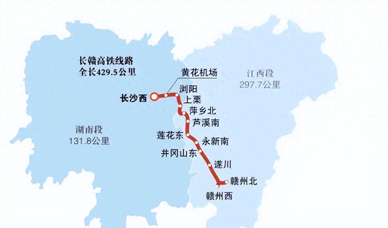 长赣高铁是干线高铁厦渝通道的重要组成部分,起于湖南长沙,终于江西赣州,线路全长429.5公里,设计时速350公里。