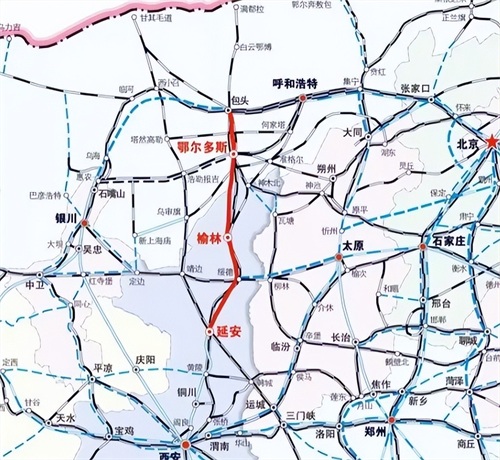 延榆鄂高铁是干线高铁包海通道的重要组成部分,起于陕西延安,终于内蒙古鄂尔多斯,长389.84公里,设计时速350公里。