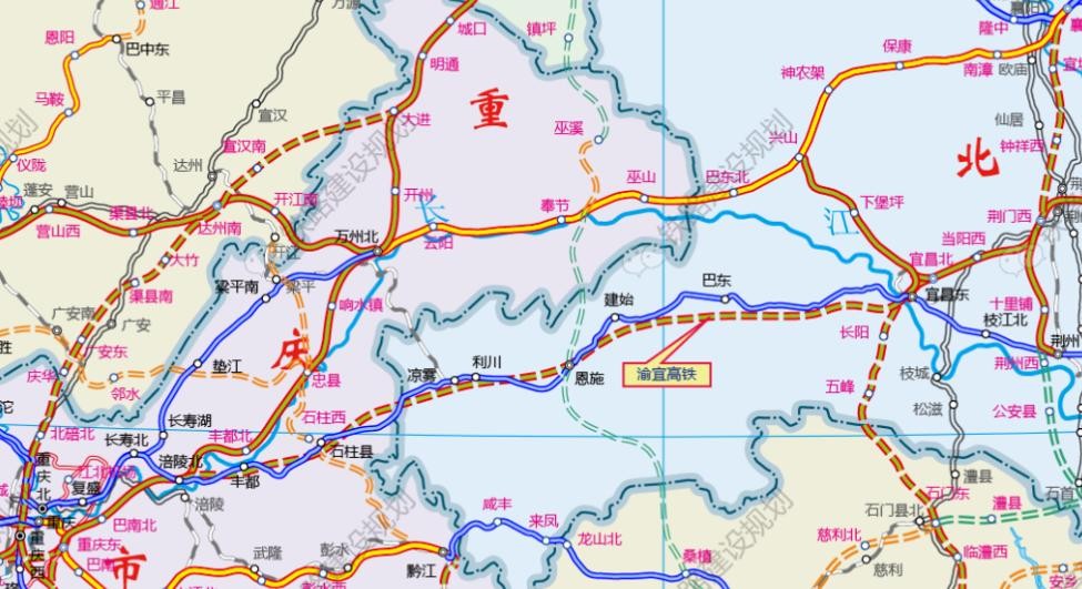 渝宜高铁是干线高铁沿江通道的重要组成部分,起于重庆涪陵,终于湖北宜昌,长490公里,设计时速350公里。