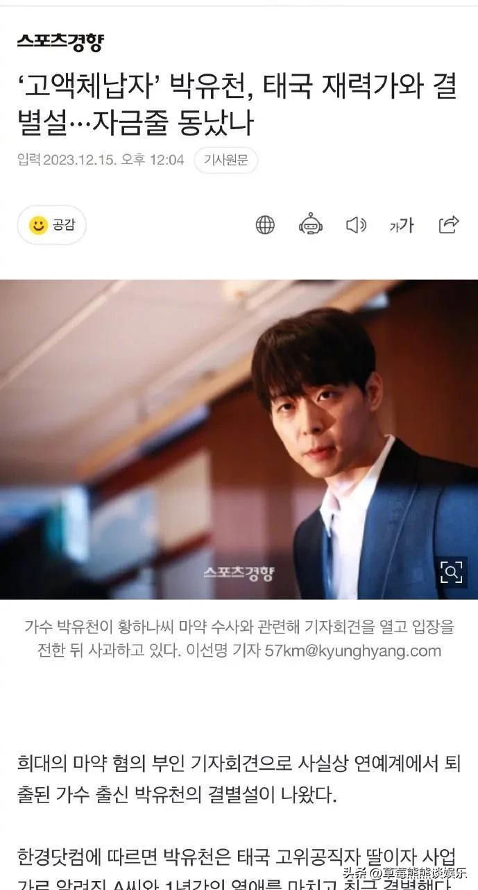 近日,据韩媒报道,朴有天与泰国女企业家在交往一年多后宣布分手。这一消息引起了广泛关注和猜测。