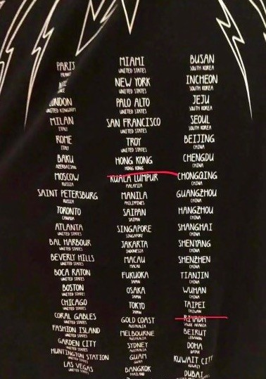 今日午间,南都记者留意到,纪梵希Givenchy一款背后印有国家和地区的标式的T恤中,其将香港、台湾涉嫌单独与其他国家并列的形式印制在T恤上。