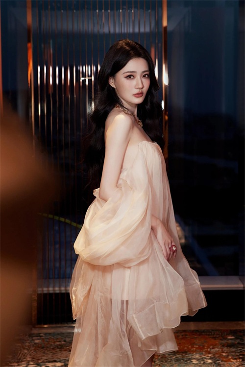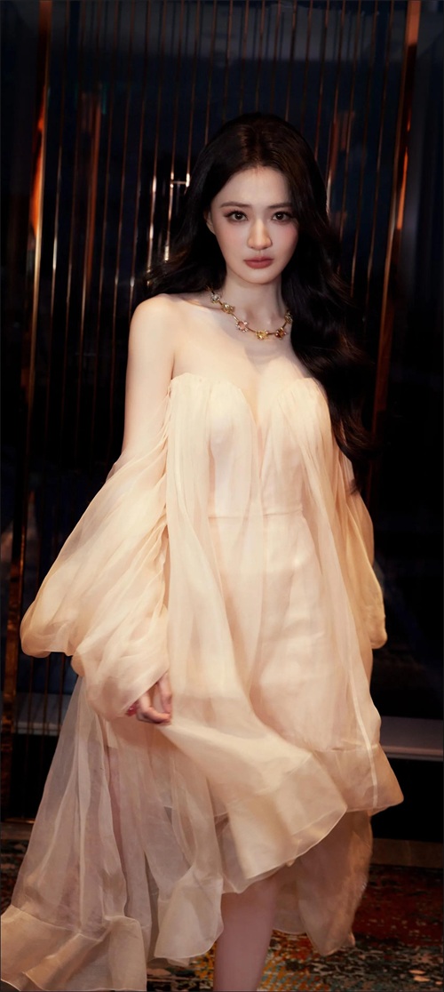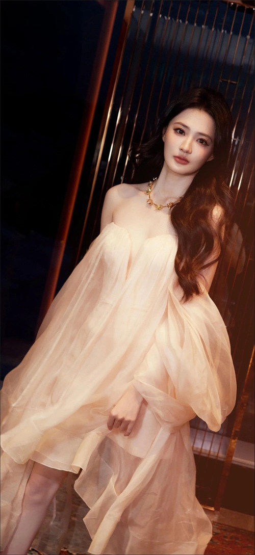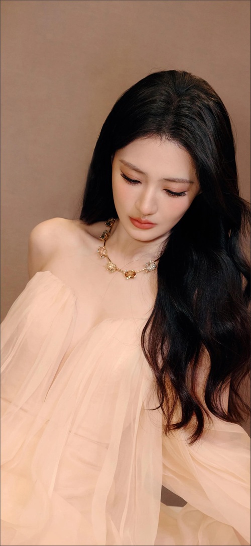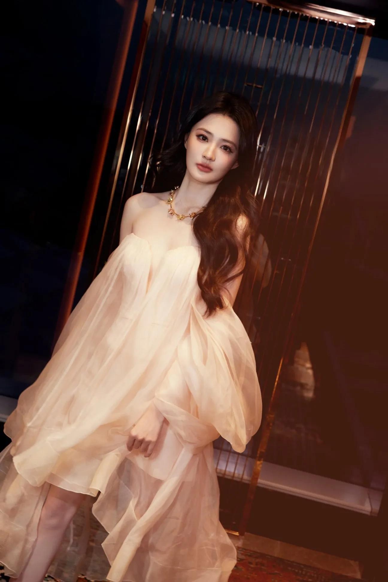 徐璐粉色深V长裙太温柔了。#徐璐壁纸#