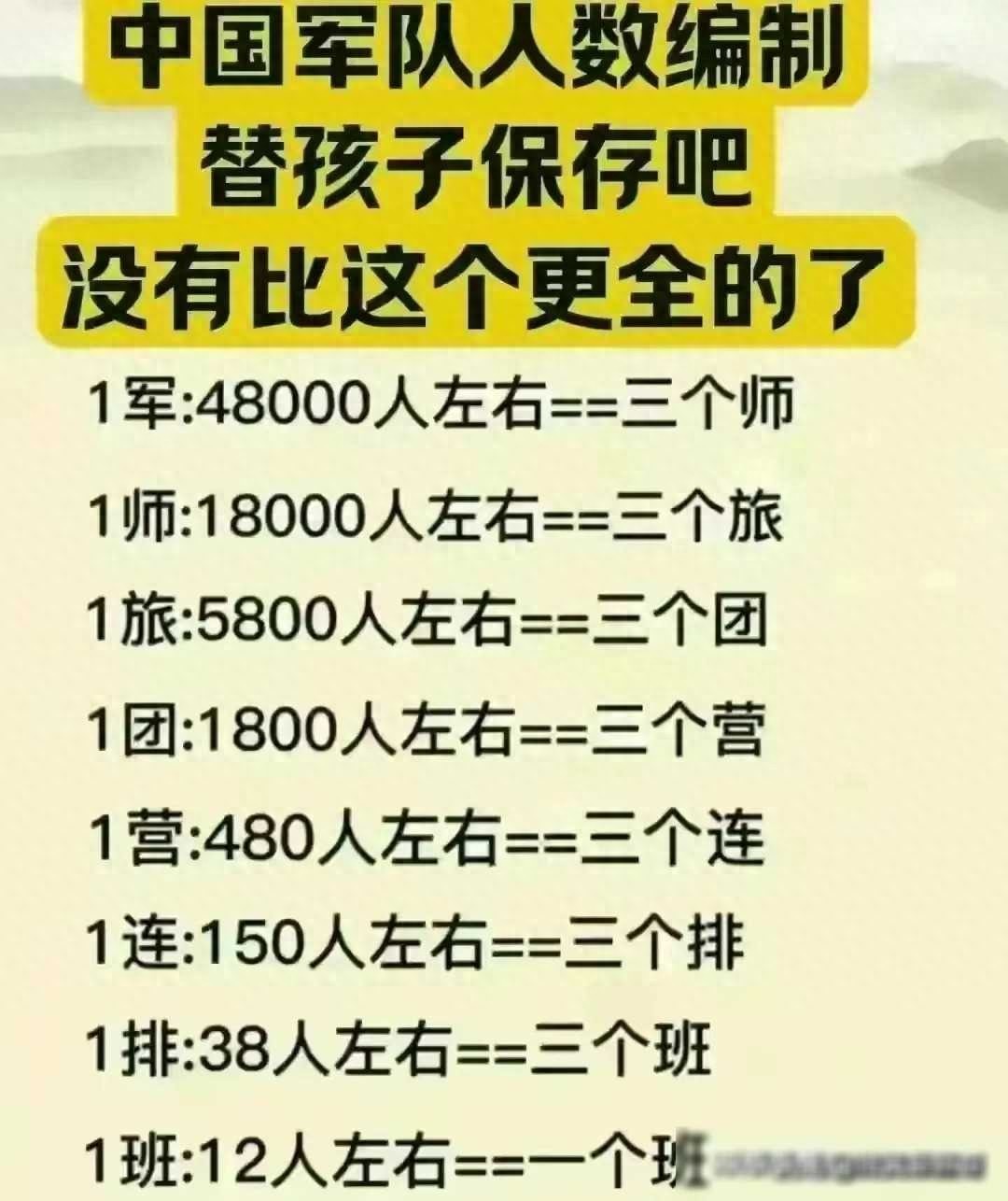 中国军队各层级的编制数!