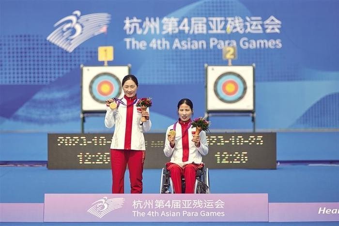 本报讯 (群众新闻网记者 苏琳)10月25日上午,杭州第4届亚残运会女子反曲弓双人团体公开级决赛在富阳银湖体育中心举行。陕西运动员吴春艳、毋洋组合获得中国代表团射箭项目首金,这也是杭州亚残运会上陕西运动员夺得的首枚金牌。