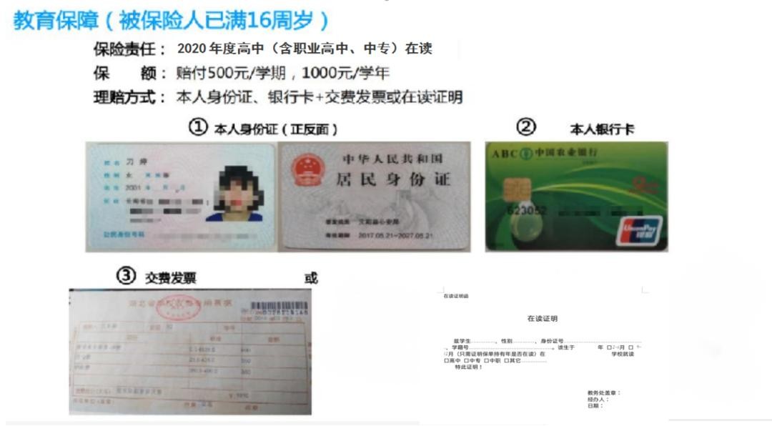 2023年度,就读高中、中专、职高,可获赔500元/学期、1000元/学年。