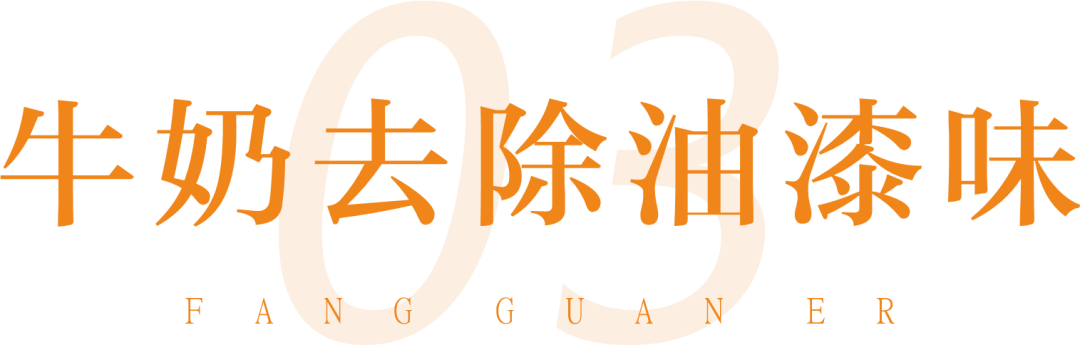 在新房装修完成之后,油漆味往往是最为浓重的,而牛奶则能够有效地去除油漆所带来的气味。方法主要是将牛奶煮开,然后盛放在盘子里装放在涂过油漆的橱柜中,然后将橱柜门关上,通常经过5个小时左右就能够去除油漆气味。