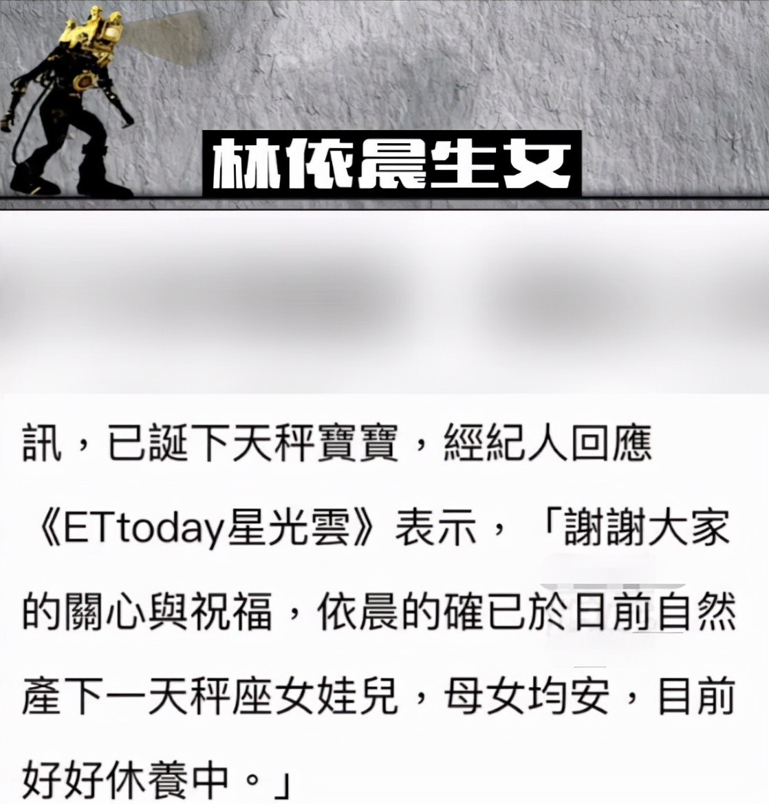 林依晨平安产女