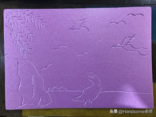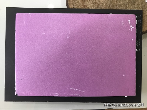 第四步:拓印。涂色完成之后,把纸板拓印在黑色卡纸上。注意要用力按压,力求清楚。