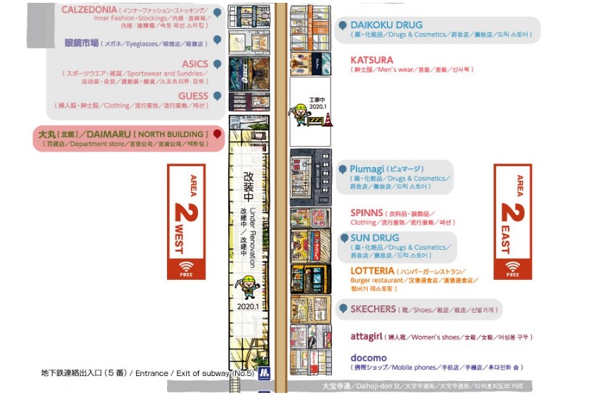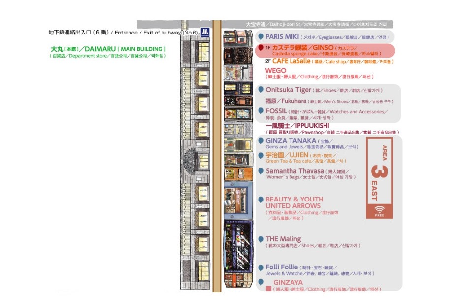 如果标识红色的大丸百货旗下的商店,再逛完之后就可以拿着全部的商品到到大丸百货的免税柜台办理。