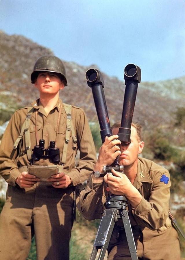 十八,1944年,在盟军向罗马推进的过程中,一名美国士兵试图发现德国士兵的位置。