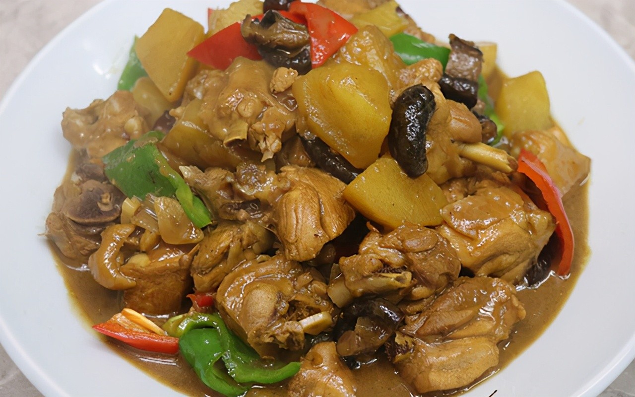 火遍大街小巷的黄焖鸡,教你在家做,鸡肉鲜嫩多汁,有荤又有素