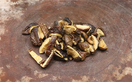 第三步:适量香菇提前用温水泡开,然后把香菇捞出来,切成稍微大一点的条。