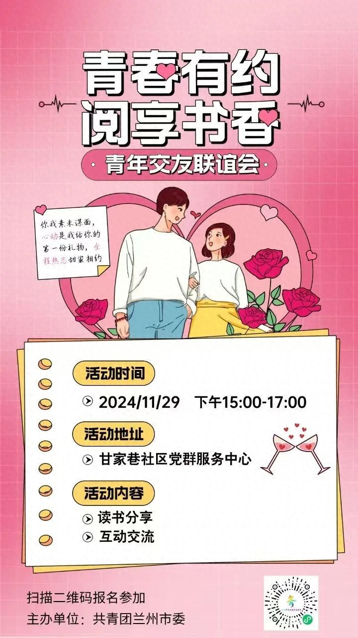 为了促进青年之间的深度交流与情感联结,助力青年增进友谊、邂逅爱情、拥抱幸福,团市委拟于近期开展2024年第11期青年交友联谊活动。