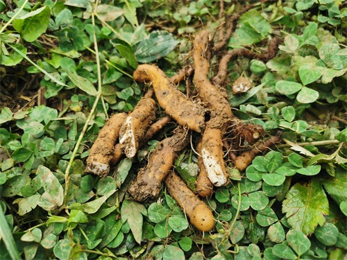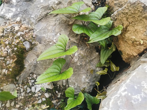 野生山药在我们这里一般生长在路边和山林里,可以说到处都是比较常见的一种藤草植物,我们这边称它叫作黏狗苕,它生长的根茎较深,长得也不大,而且还比较难以挖取,所以难得会有人去采挖。