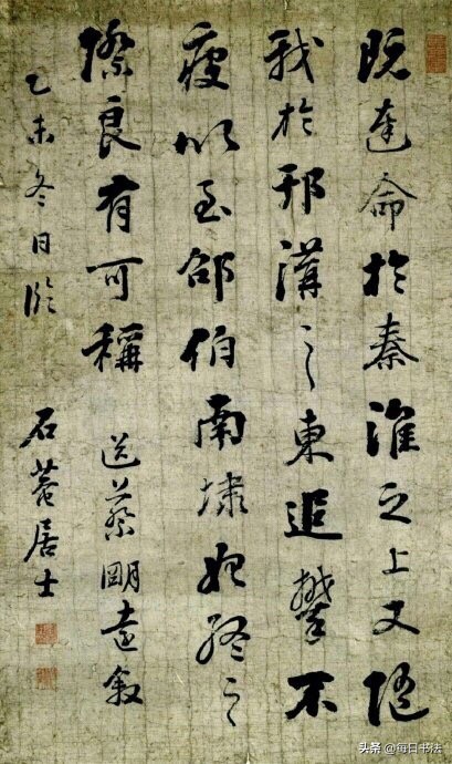 刘墉(1719一1804)清代著名书法家,是帖学集大成者。在乾隆之际,翁方纲、梁同书、王文治、刘墉享誉书坛。当时,人们称翁、梁、王、刘为书法“四大家”,其书法艺术成就,当推刘墉最高。清代以来,刘墉与翁方纲、成亲王永瑆、铁保并称“翁刘成铁”。康有为还曾称他是清朝的“集帖学之大成者”