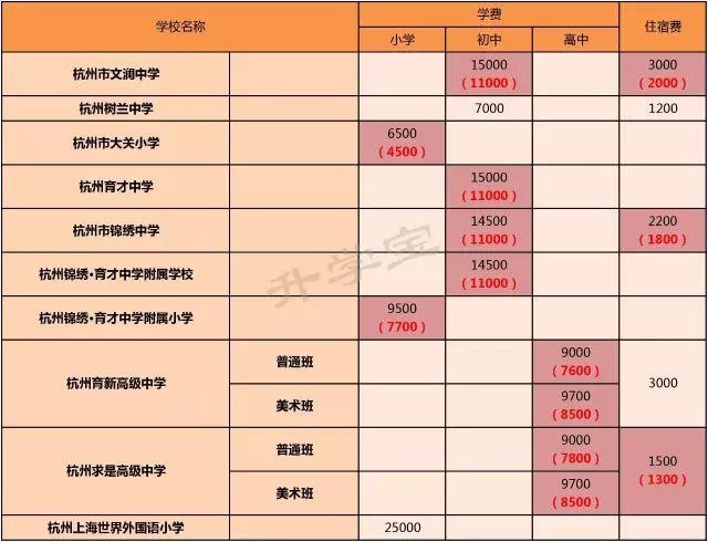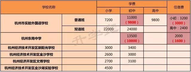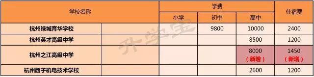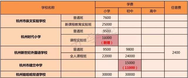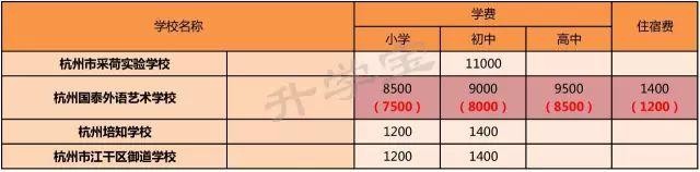 采荷实验学校新增了小学部,学费为12000元。培知学校和御道学校的小学部学费从1200元上涨到了2000元,两校初中部学费从1400元上涨到了2200元。