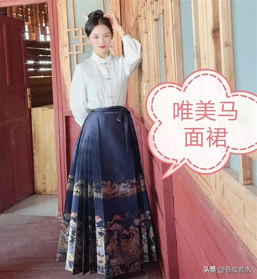 马面作为中国传统文化中的一个重要符号,代表着神秘与力量,具有强大的视觉冲击力。而裙子的设计则巧妙地结合了传统与现代的元素,使得马面裙流露出独特的魅力。