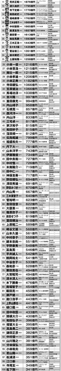 由于日本国税局自2005年开始,便停止对外公布高额纳税人排名,《Money Post》在Ullet(上市公司综合信息搜索引擎)的协助下,通过上市公司的有价证券报告书,推算出各位富豪持有的股票证券金额,再加上企业报酬等,得出“持有金额”总合。