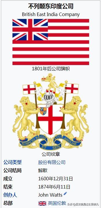 东印度公司创立于1600年,最初的正式全名是伦敦商人在东印度贸易的公司(The Company of Merchants of London Trading into the East Indies)。它是由一群有创业心和有影响力的商人所组成。这些商人在1600年12月31日获得了英国王室给予他们的对东印度的15年的贸易专利特许。公司共有125个持股人,资金为7.2万英镑。