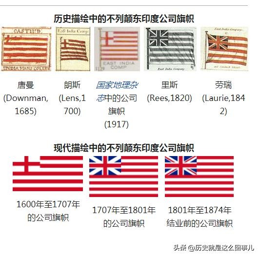 东印度公司最初的旗帜由圣乔治十字和横杠组成,后来圣乔治十字被替换为大不列颠王国国旗,这有可能是美国国旗的榜样。对历史上两面旗帜的比较说明这个论点有一定的道理。东印度公司的旗帜是1600年代设计的,美国国旗是1777年设计的。