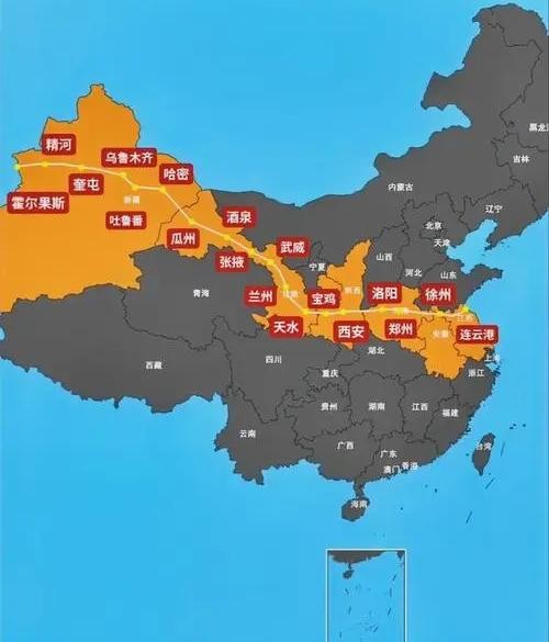 连霍高速(G30):从江苏省连云港市通往新疆霍尔果斯市,中途经过连云港-徐州-开封-郑州-洛阳-西安-天水-兰州-武威-嘉峪关-哈密-乌鲁木齐-霍尔果斯等市,是华东到西北的一条极其重要的交通大动脉,途经江苏、安徽、河南、陕西、甘肃、新疆等6个省区,全长4258.19公里,开车从连云港到霍尔果斯要43个小时。