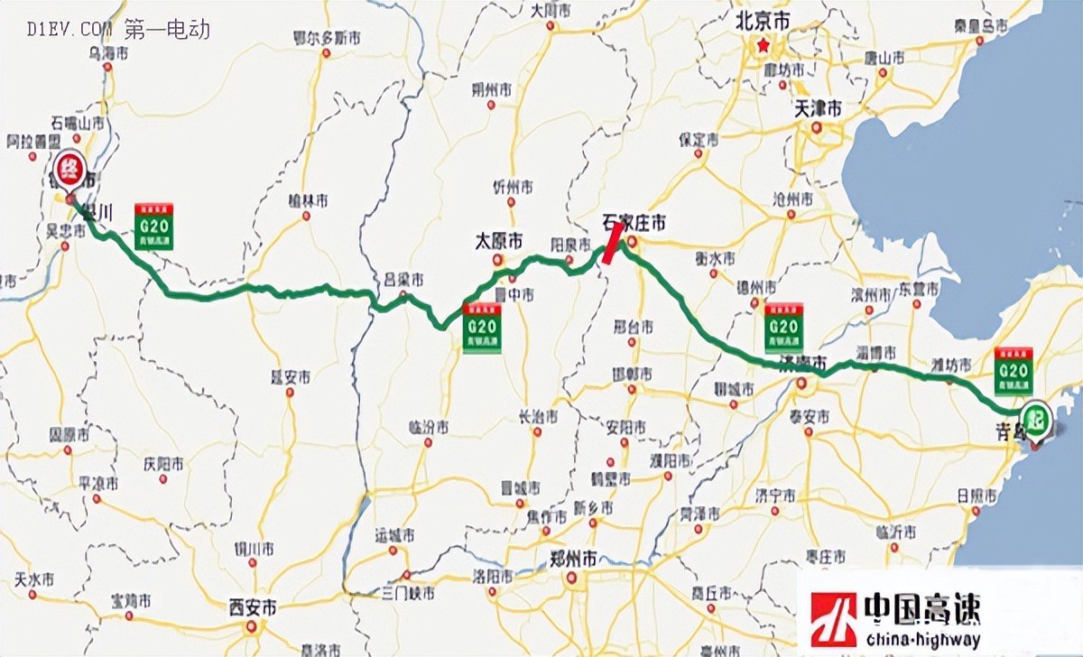 青银高速(G20):从山东省青岛市通往宁夏银川市,中途经过青岛-潍坊-淄博-济南-石家庄-太原-吕梁-榆林-银川等市,途径山东、河北、山西、陕西、宁夏5省区,全长1610公里,开车从青岛到银川要16个小时。