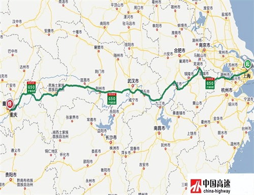 沪渝高速(G50):从上海市通往重庆市,中途经过上海-湖州-宣城-芜湖-铜陵-池州-安庆-黄石-武汉-荆州-宜昌-恩施-忠县-垫江-重庆等市,途经上海、浙江、安徽、湖北、重庆5省市,全长1786公里,开车从上海到重庆需17个小时。
