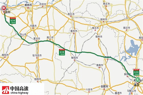 宁洛高速(G36):从江苏省南京市通往河南省洛阳市,中途经过滁州-蚌埠-阜阳-周口-漯河-平顶山等市,途径江苏、安徽、河南等3省,全长755.368公里,开车从南京到洛阳需6个小时。