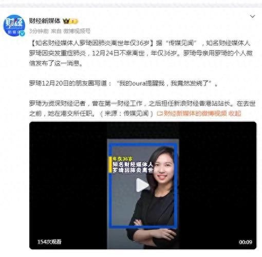 知名财经媒体人罗琦因肺炎离世,年仅36岁