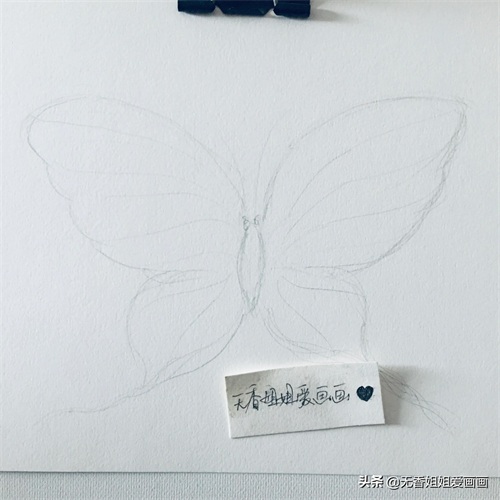 用铅笔在画纸上轻轻地勾画出蝴蝶的大致轮廓。
