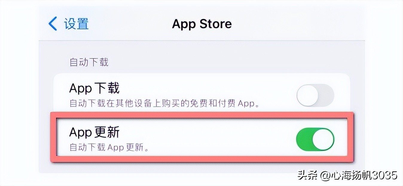 三、 关闭APP自动更新下载,如果开启,系统会自动更新应用程序,这样既浪费流量,又耗费电量。这个可以在我们需要的时候手动下载更新。设置方法:设置中找到APP Store,关闭APP更新。