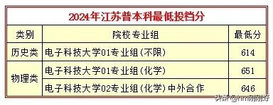 电子科技大学2024年在江苏地区的投档分见下图。分数很高,历史类最低投档分614,物理类最低投档分651,中外合作也达到了646。