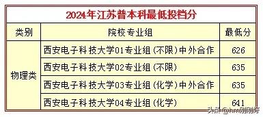 西安电子科技大学2024年江苏地区最低投档分见下图。分数也很高,02专业组635(管理科学与工程类),04专业组641(电子信息类、计算机类、自动化类、材料类)。