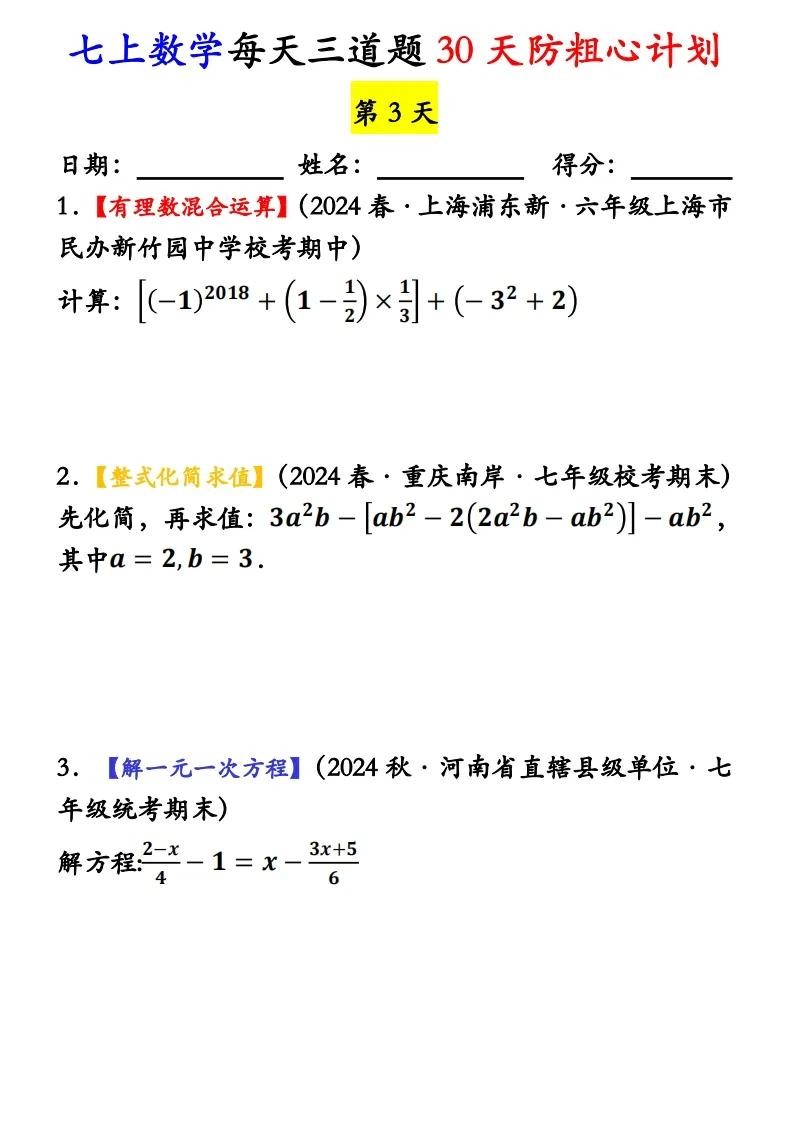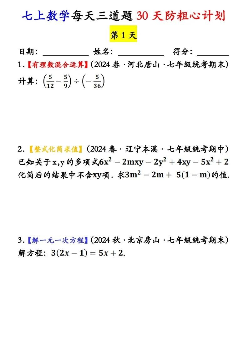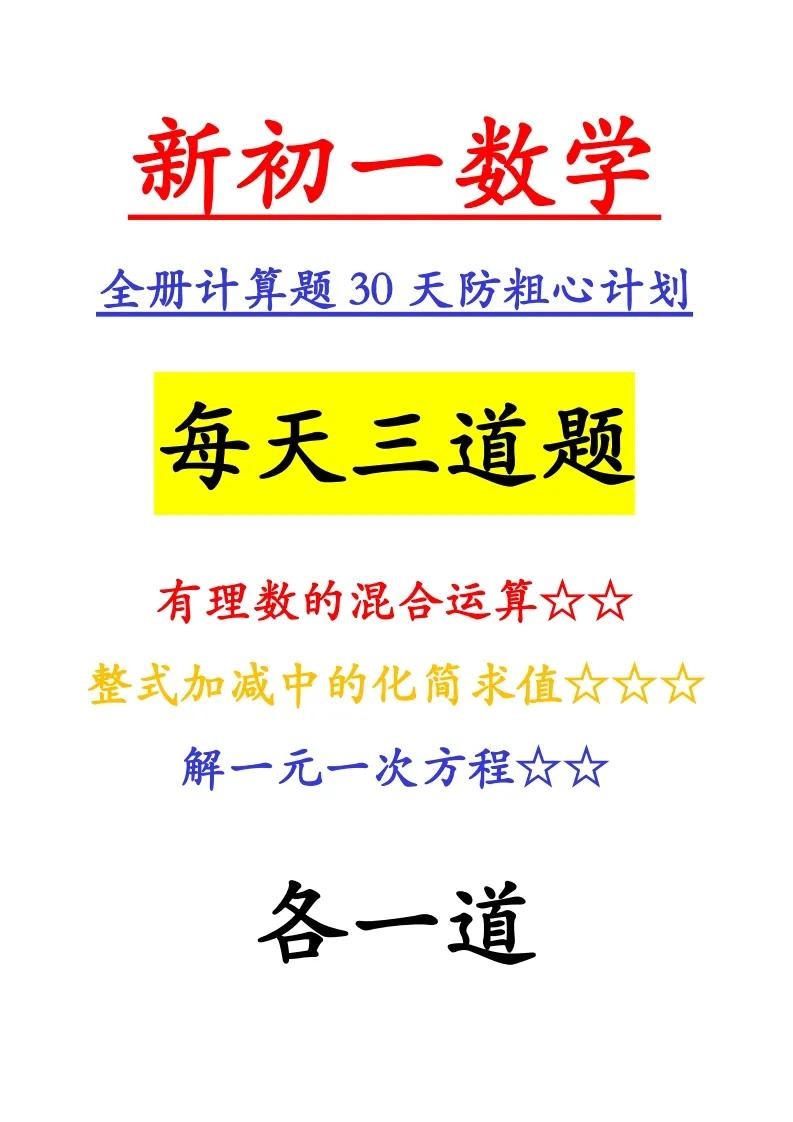 为此,老师们精心整理出了这份七年级上册数学全册计算题 30 天防粗心计划,并且提供了完整的电子版,方便大家打印使用。这份计划凝聚了老师们的心血与智慧,是助力同学们攻克计算题难关的有力武器。