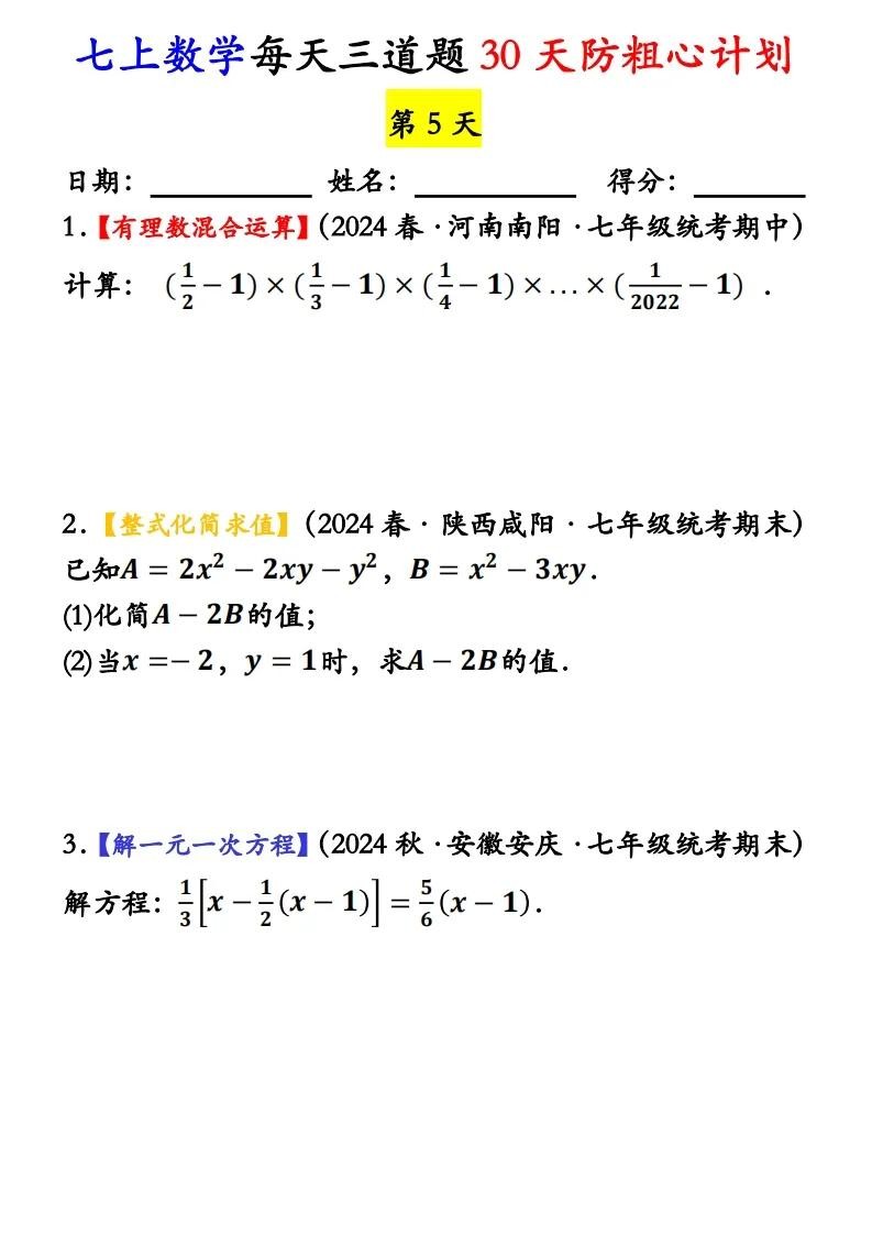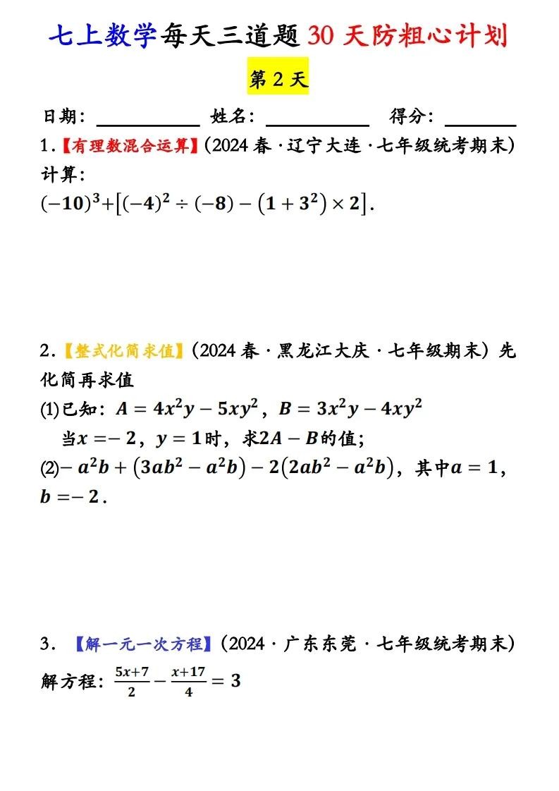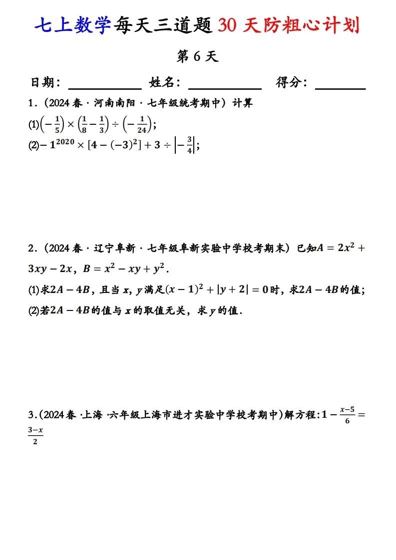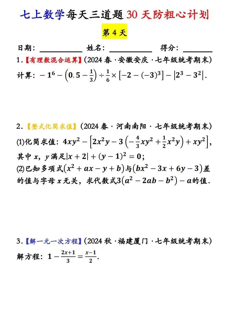 为此,老师们精心整理出了这份七年级上册数学全册计算题 30 天防粗心计划,并且提供了完整的电子版,方便大家打印使用。这份计划凝聚了老师们的心血与智慧,是助力同学们攻克计算题难关的有力武器。