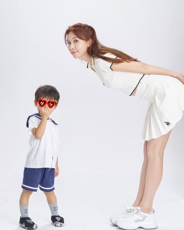 在这特别的日子里,林志玲分享了三张和儿子的温馨合照。她穿着简单优雅的白色上衣,搭配柔和的粉色长裙;而儿子则穿着一件可爱的蓝色T恤和牛仔裤,显得俏皮又充满活力。照片中,母子两人互动丰富,一会儿摆出惊讶的表情,一会儿又展现林志玲弯腰嘟嘴准备亲吻宝贝的模样,充满温暖和爱意。