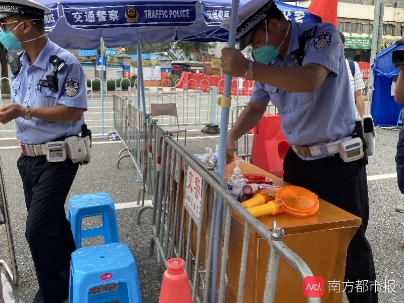 14时11分,交警开始拆除栅栏、收起遮阳伞和帐篷,搬开放置登记车辆和司乘信息表的木桌。