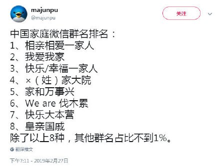 中国家庭八大微信群名排名,你中枪了吗?