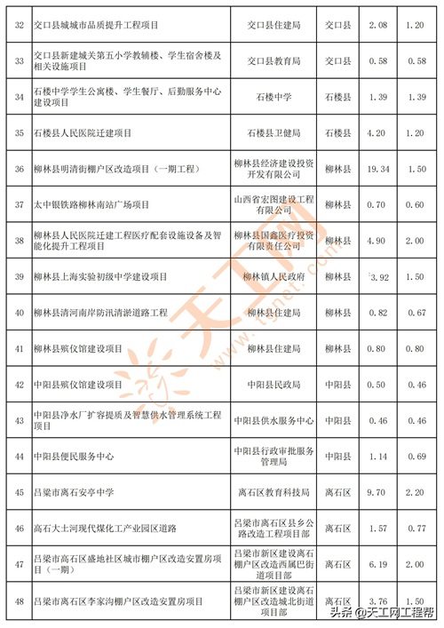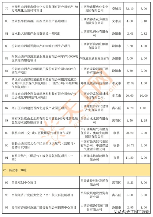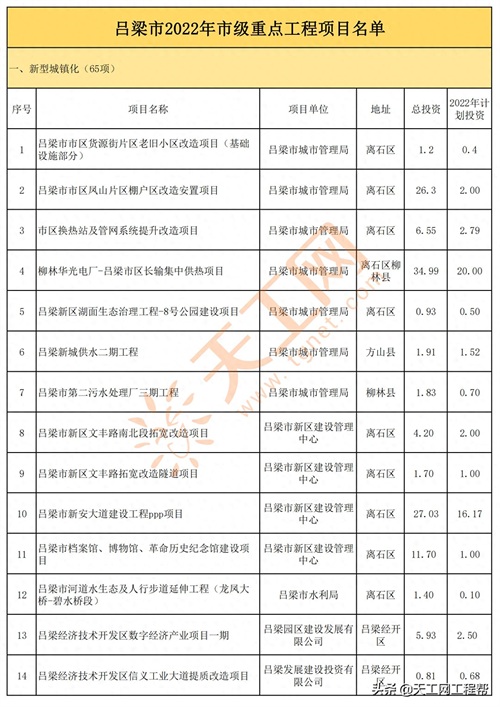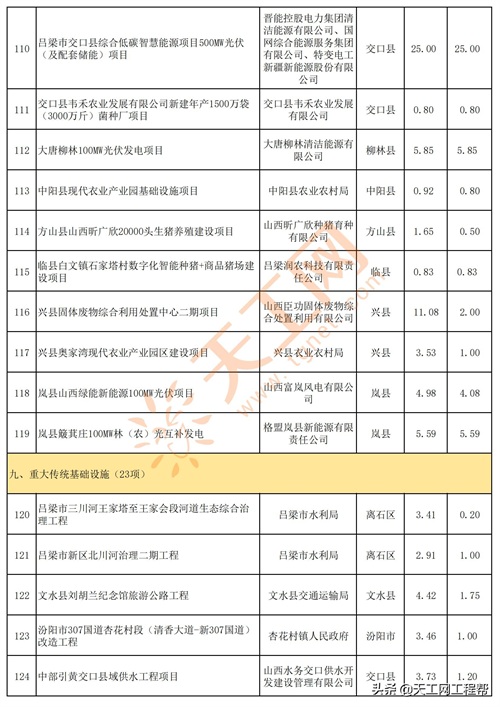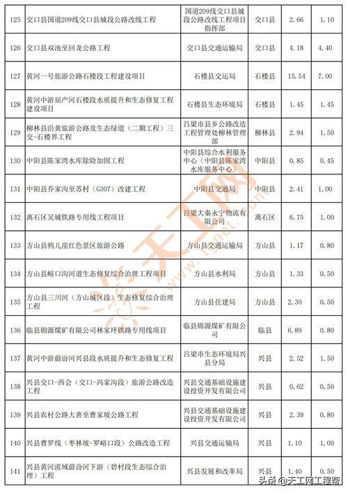 山西省吕梁市2022年市级重点工程项目名单(共142个)