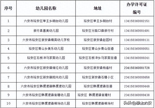 六安市裕安区终止办学幼儿园名单
