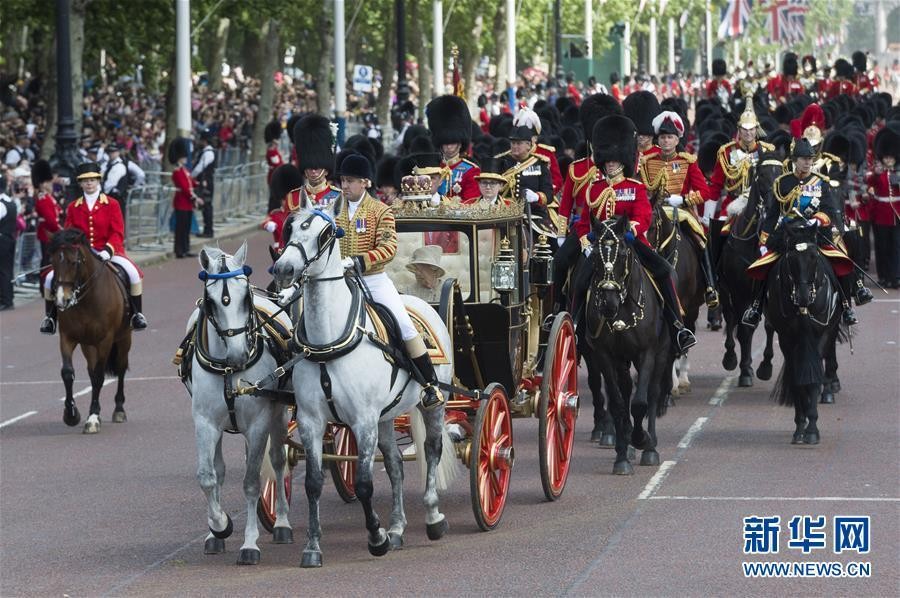 6月8日,在英国伦敦,英女王伊丽莎白二世乘马车离开白金汉宫。 当日,英国伦敦举行盛大庆典,庆祝英女王93岁官方生日。