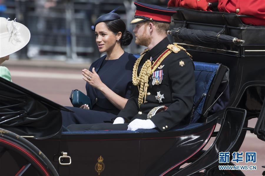 6月8日,在英国伦敦,英国哈里王子与妻子梅根乘马车离开白金汉宫。 当日,英国伦敦举行盛大庆典,庆祝英女王93岁官方生日。