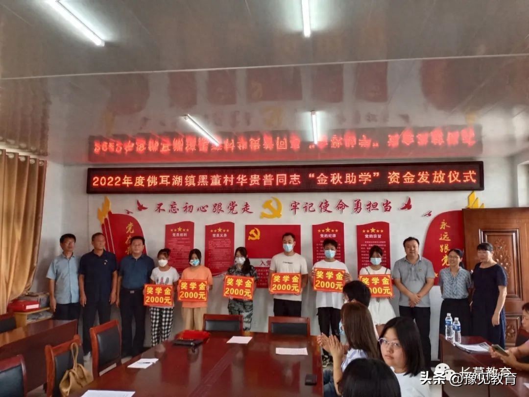 8月16日上午,“好乡贤”华贵普“金秋助学”资金发放仪式在本村举行。佛耳湖镇党委副书记、镇长张伟中,教体局班子成员王晓萍、华洪璞,村两委干部,今年本村18名高考本科、中考一二高录取学子及家长参加发放仪式。