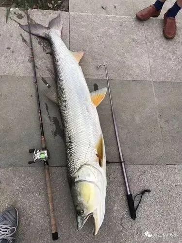 鳡鱼又名竿鱼、大口、鱼。体细长、腹部圆、头长、口大。在水中体色微黄,背部灰黑、腹部为银白色。