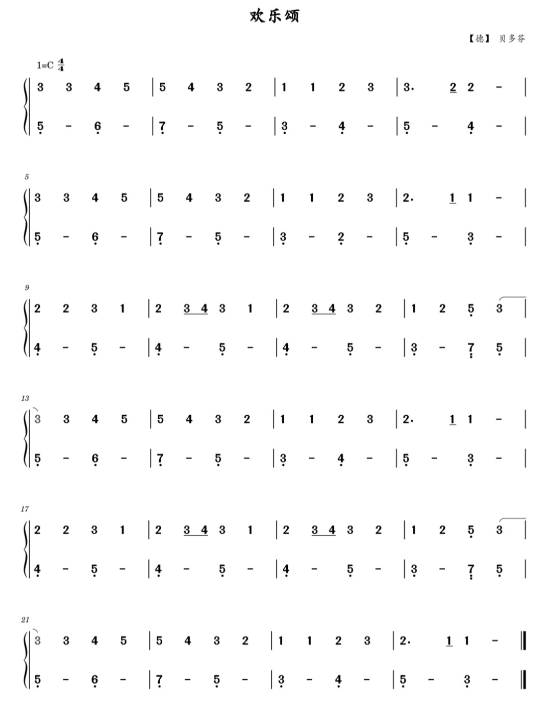 欢乐颂,钢琴谱简单版,简谱,贝多芬,曲谱分享