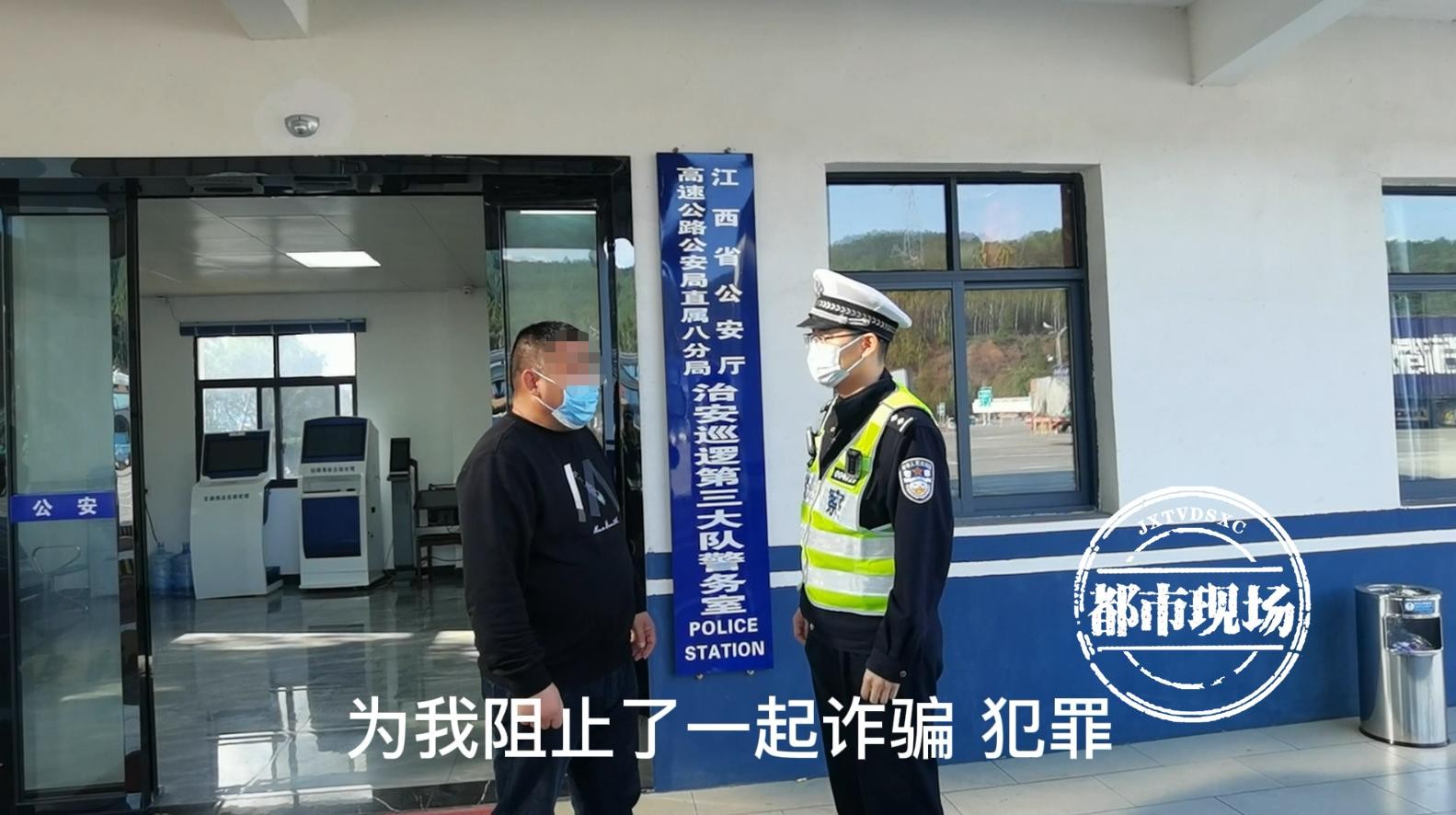 3月7日16时许,江西高速警察大余服务区警务室接到一起现场报警求助,驾驶员朱师傅称其通过手机网贷平台贷款,由于输错了银行卡号码,对方要求其转15000元解锁贷款。